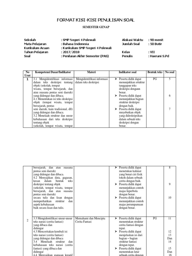 Kisi kisi soal dan jawaban . Smp islam pb soedirman bekasi. Kumpulan soal dongeng sunda kelas 7 assalamualaikum wr wb terimakasih sudah berkunjung ke halaman blog ini. Peserta didik membaca buku paket bahasa indonesia kelas vii halaman 235. Instrument evaluasi hasil belajar memahami isi teks cerita fabel yang disusun oleh guru bahasa indonesia di smp negeri 5.